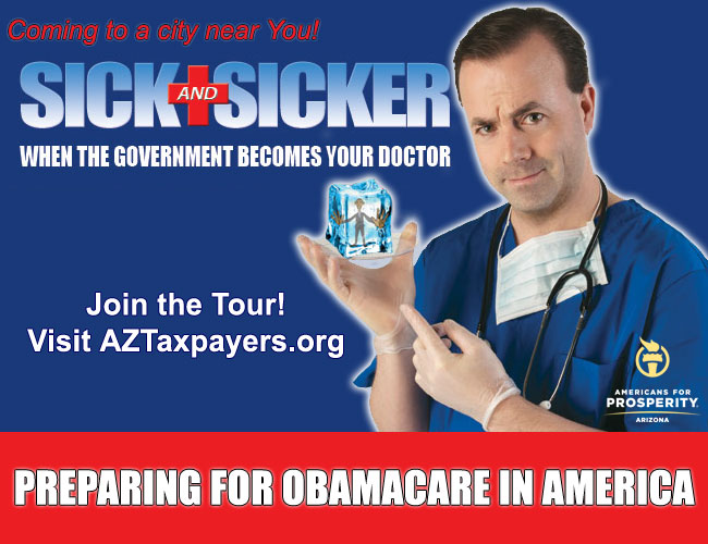 Americans for Prosperity of Arizona is on the move again with more tour stops announced across Arizona! Our tour features the viewing of the healthcare documentary, Sick and Sicker followed by a town hall discussion of the Affordable Care Act (Obamacare) with doctors and healthcare policy experts. This series is an eye-opening revelation on what’s really happening with Obamacare, how to prepare for it and what you can do to fight for healthcare freedom.